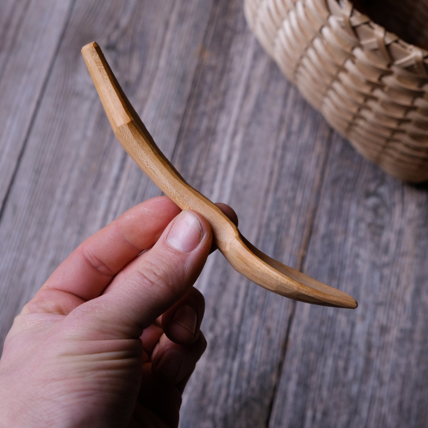 The asymmetrical bowl makes this spoon suitable for a right handed user.