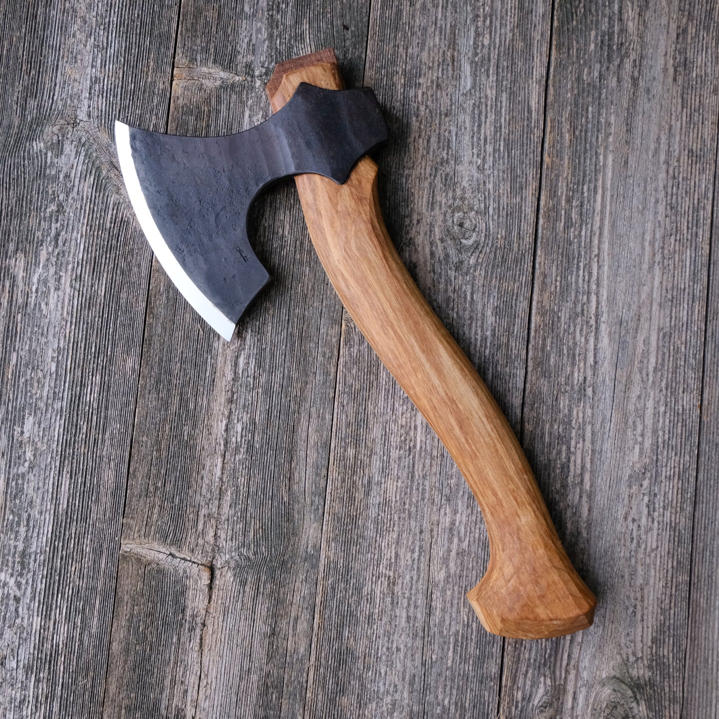Features a faceted hand carved English olive-ash handle. The facets improves the grip on the axe, which means you can use your axe longer without getting blisters or fatiguing your hand.